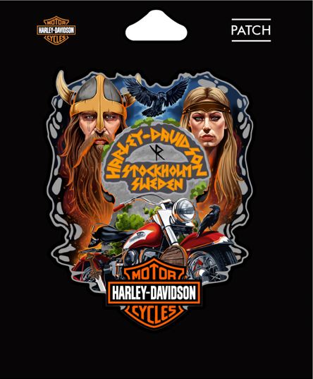 Den här Harley-Davidson Stockholm-patchen är en hyllning till vikingarnas okuvliga mod och friheten på vägen. Två nordiska krigare vakar över sin Harley, redo att ta sig an nya äventyr över asfalten.