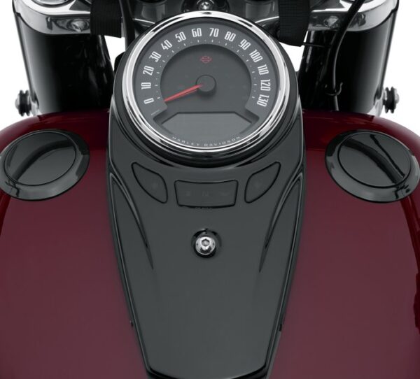 Emphasize the long and lean look of the fuel tank with the Flush-Mount Fuel Cap and Left Side Tank Cap Kit. Gloss Black finish Pop-up filler design replaces the Original Equipment twist-on fuel cap With a simple push, the fuel filler cap pops up to provide ample grip, even while wearing gloves Cap features soft-click ratcheting feature to prevent over-tightening Easy to install, the cap assembly screws into position Left Side Tank Cap is a decorative piece that replaces the Original Equipment trim and looks identical to the flush mount cap when sealed Includes fuel cap, left side tank cap and two trim rings