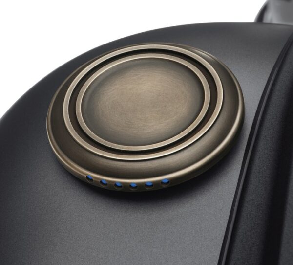 This low-profile fuel gauge replaces the analog readout with bright LED lamps. The six edge-mounted LED lamps glow blue when the tank is full and extinguish one by one as fuel is consumed. Manufactured from solid brass Plug-in installation without splicing Photocell automatically adjusts LED brightness Improved visibility in direct sunlight and dims at night to avoid distraction Natural antique finish will age and patina when exposed to the elements Factory treated with wax to slow the aging process
