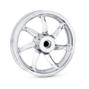 • The chrome-plated steel rim and aluminum hub are laced with chrome-plated steel spokes and nipples