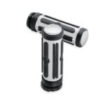 Chrome and Rubber both have their distinct places in the world of motorcycle styling. It seemed natural to bring the two together to create this unique collection. Black rubber grips are set against a chrome-plated field Grips are made from an injected rubber molding process Hand grips are a comfortable 1.3″ diameter Glueless design permits removal for servicing without damage