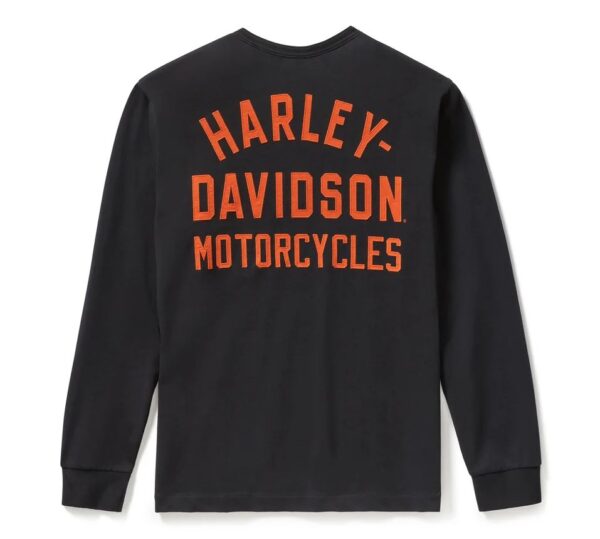 This favorite casual silhouette honors our flat track heritage. Made from heavyweight cotton jersey, our Racer Font Henley is washed for softness and a well-worn look. This men’s long sleeve Henley features a three-button placket plus rib-knit cuffs to help keep its shape. It’s finished with an embroidered hit of our Bar & Shield on front and a stitched appliqué on back that resembles racing team jerseys in our archives.