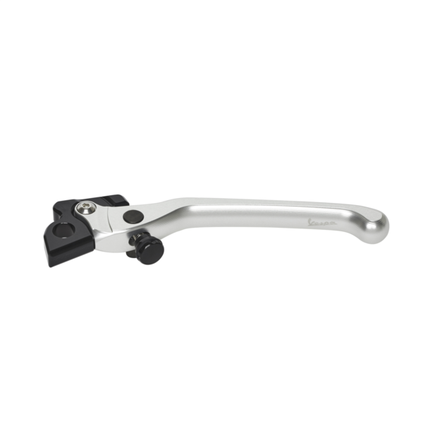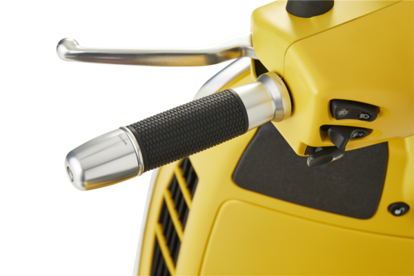 The handlebar components kit, made in CNC billet aluminum, includes front and rear brake adjustable levers, grips and handlebar ends. These products with noble material and premium finishing, refer to the sports components of real motorcycles, with specific dimensions and predisposition for mounting on GTS, possibility to adjust the distance from levers to grips and a balance weight perfect for the vehicle. The Vespa Logo lasered on each of these accessories, finally, guarantees an exclusive and precious touch to the handlebar controls.